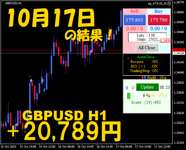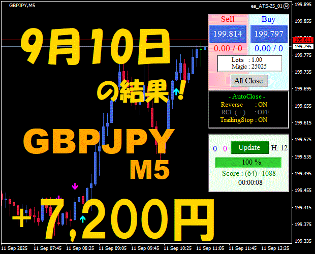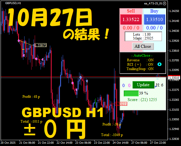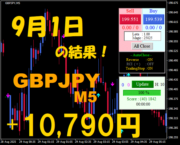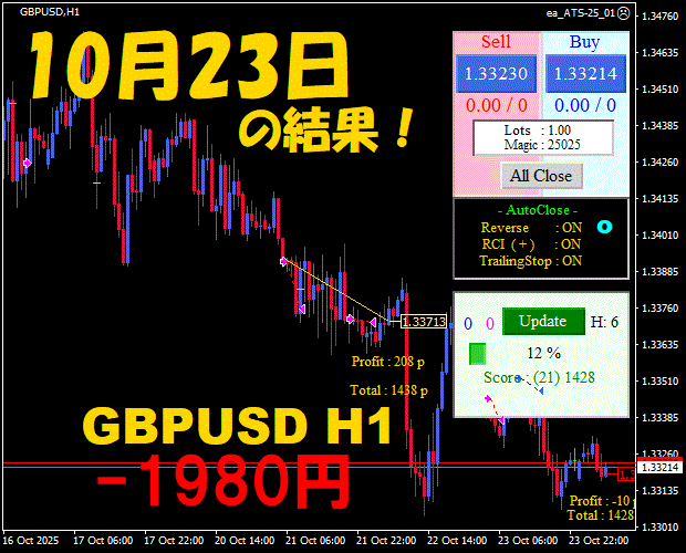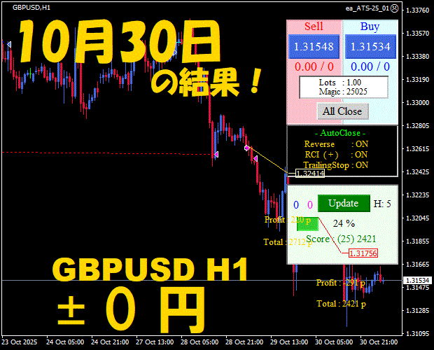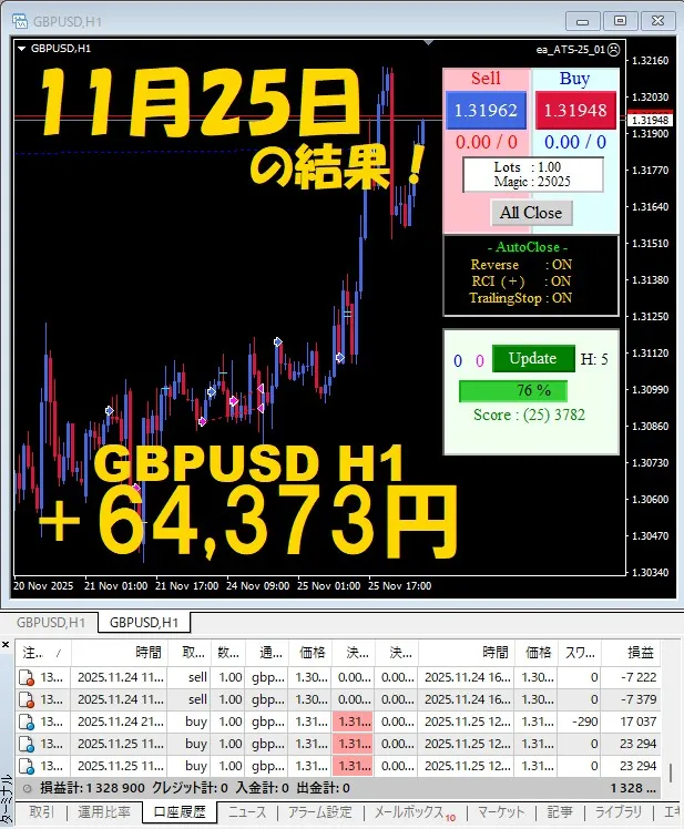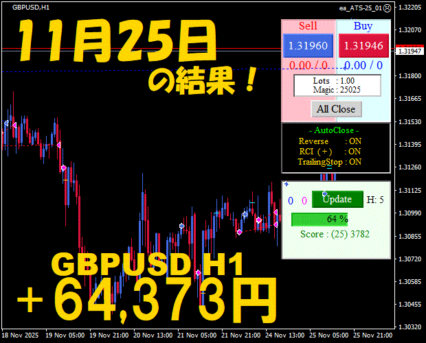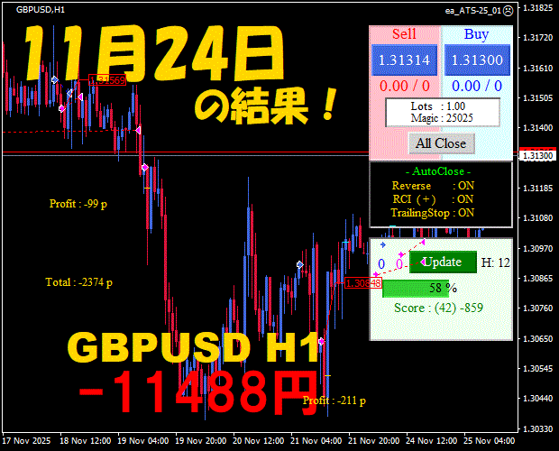 【前日の結果】GBPJPY H1 / M5 『ATS-25』11月25日