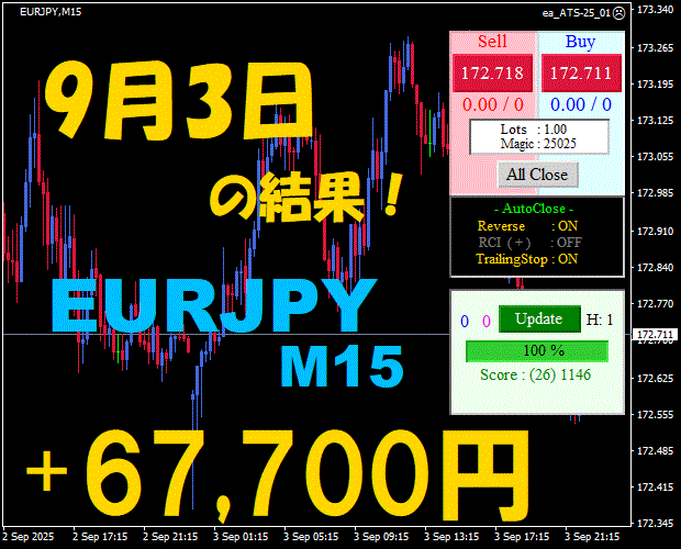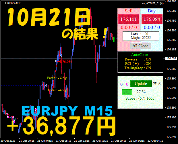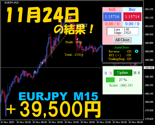 【EURJPY M15】前日の結果『ATS-25』 11月25日