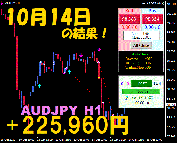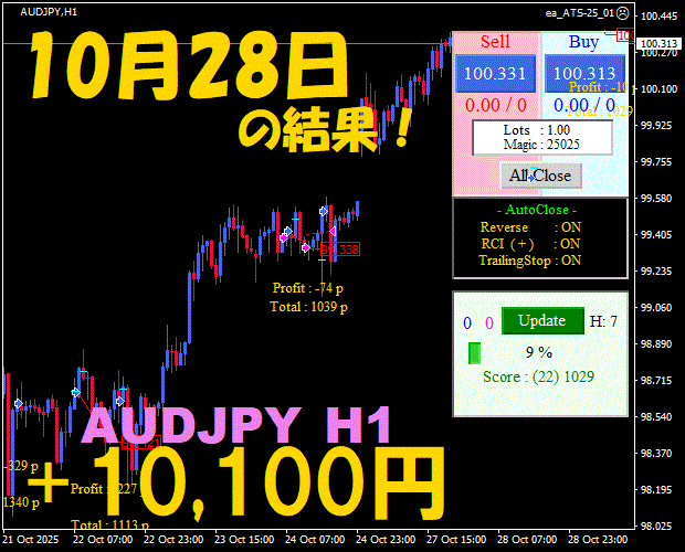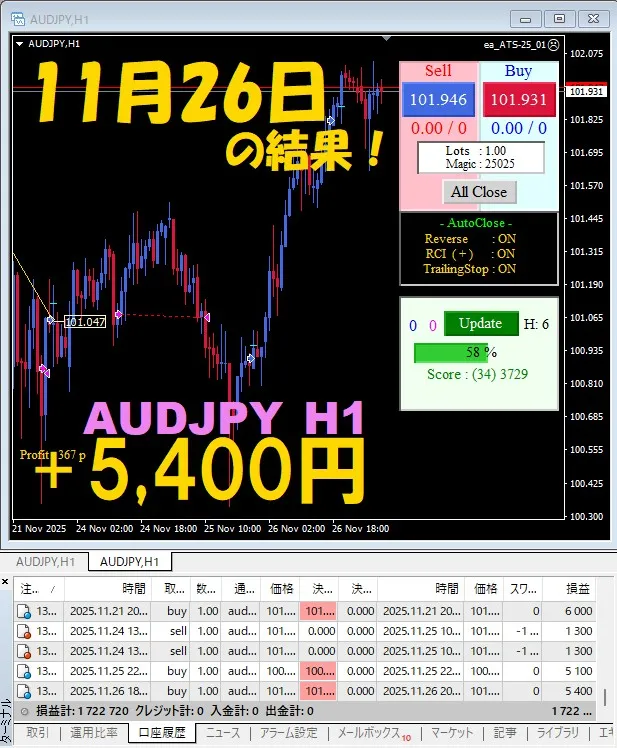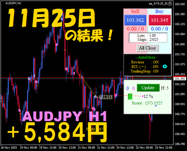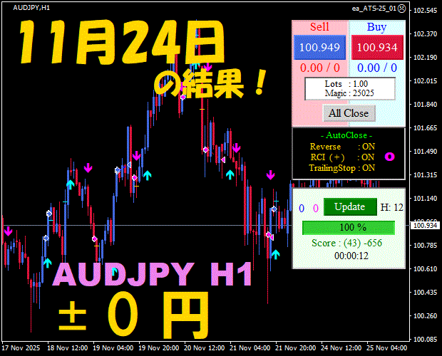 【前日の結果】AUDJPY H1 / M5 『ATS-25』11月26日