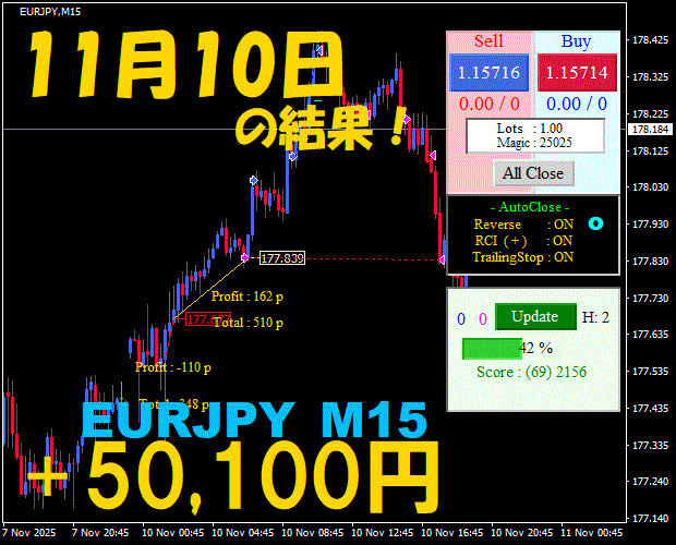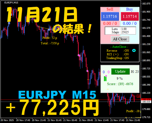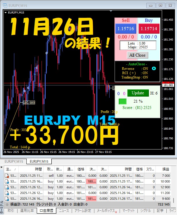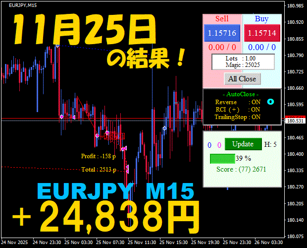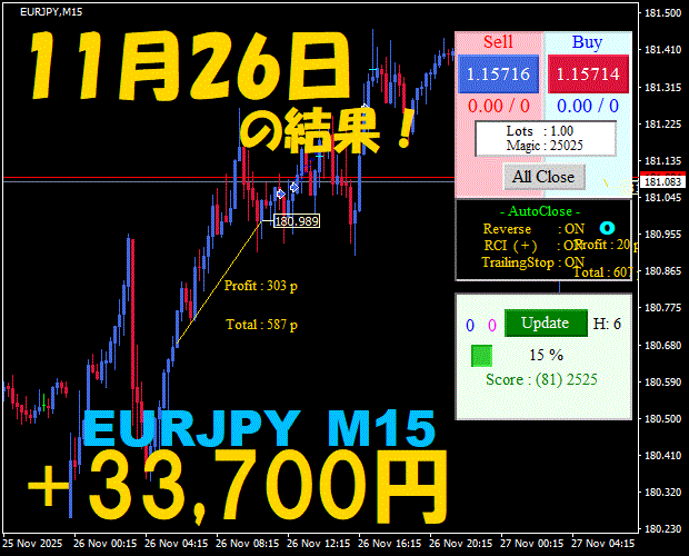 【EURJPY M15】前日の結果『ATS-25』 11月26日
