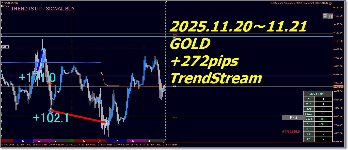【先週の成績】GOLDデイトレ特化型 ”GoldStream” 2025.11.24~11.28