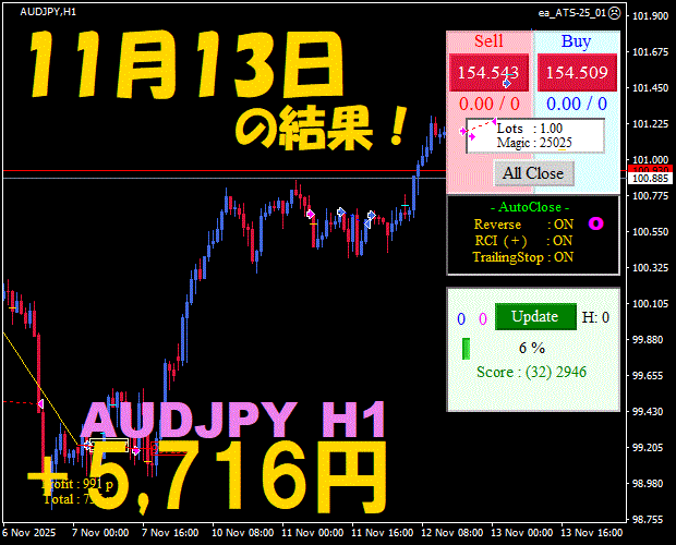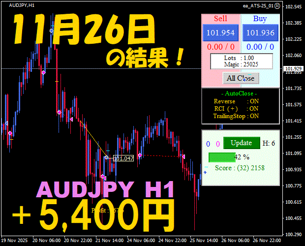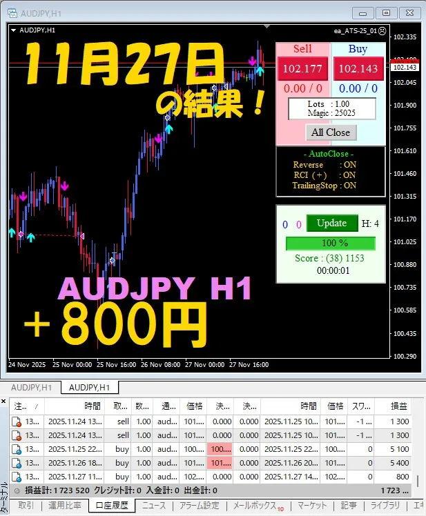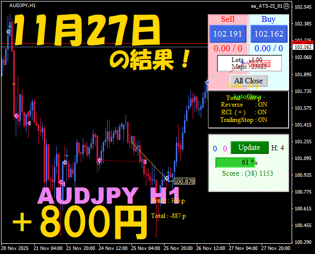【前日の結果】AUDJPY H1 / M5 『ATS-25』11月27日