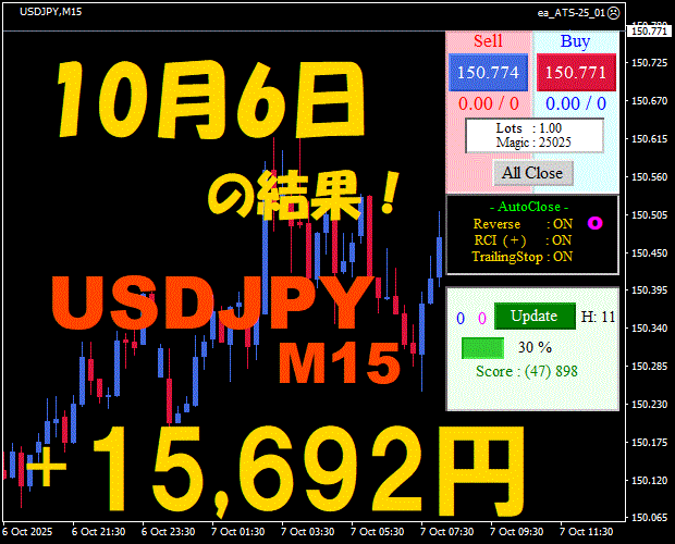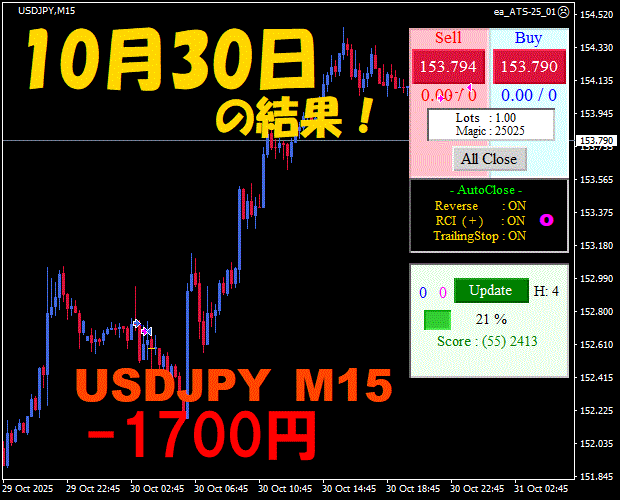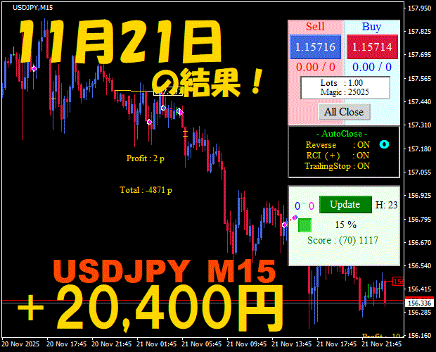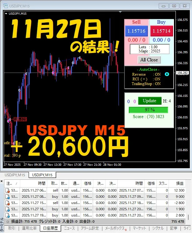 【USDJPY M15】前日の結果『ATS-25』 11月27日