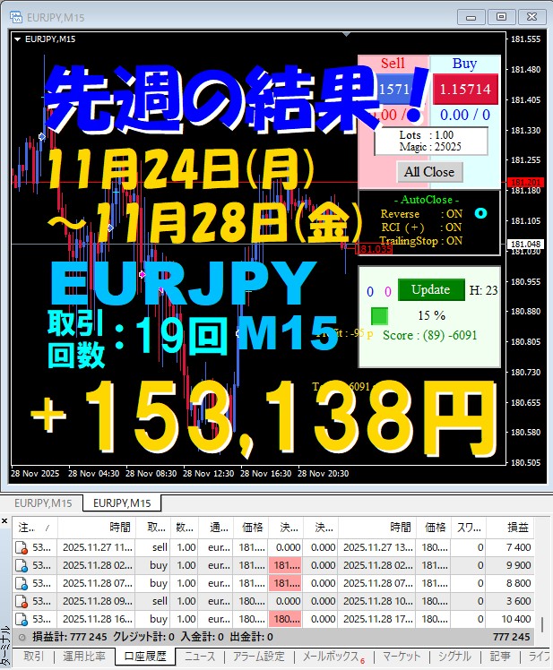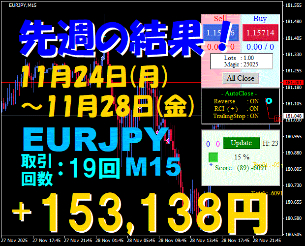 M15 週間報告!【EURJPY】ATS-25 ☆11月24日(月)~11月28日(金)