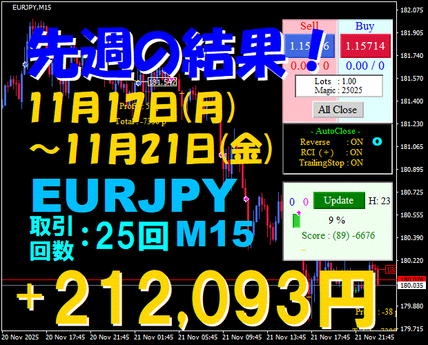 M15 週間報告!【EURJPY】ATS-25 ☆11月17日(月)~11月21日(金)