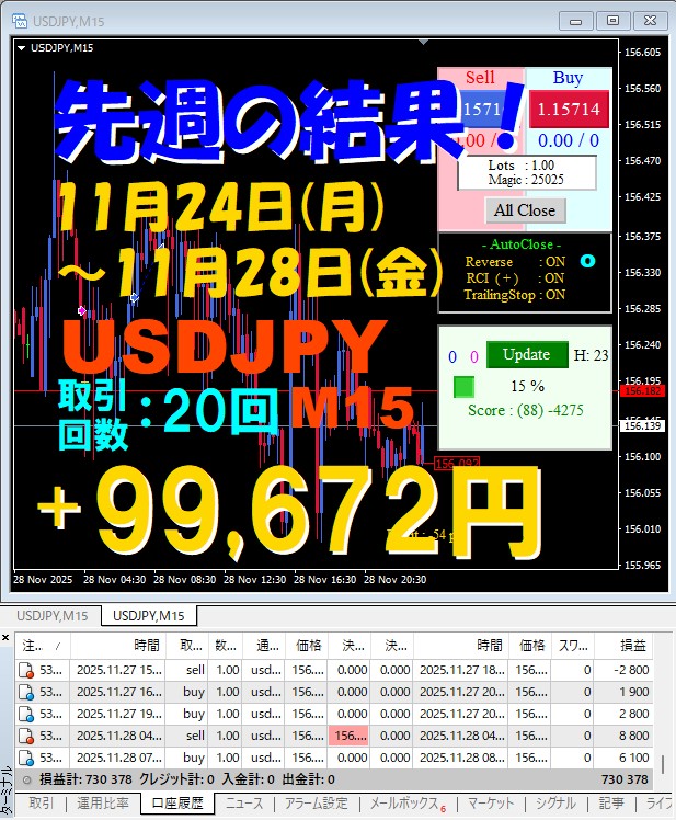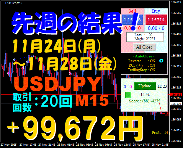 M15 週間報告!【USDJPY】ATS-25 ☆11月24日(月)~11月28日(金)