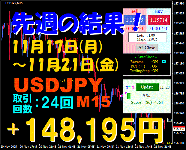 M15 週間報告!【USDJPY】ATS-25 ☆11月17日(月)~11月21日(金)