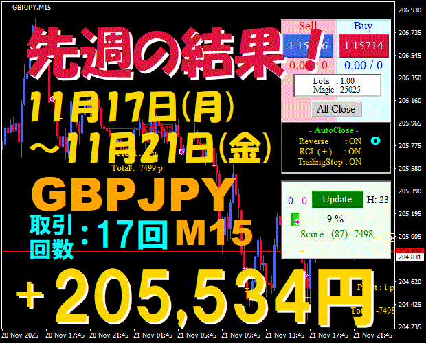 M15 週間報告!【GBPJPY】ATS-25 ☆11月17日(月)~11月21日(金)