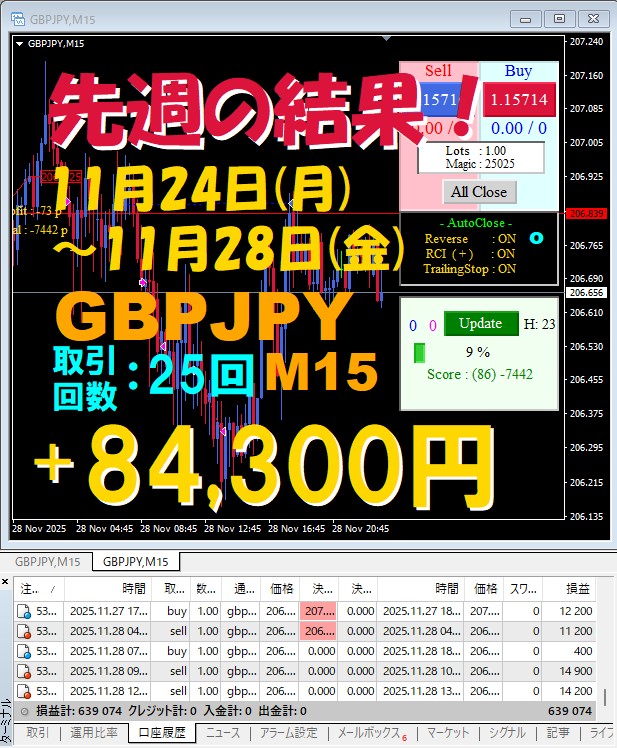 M15 週間報告!【GBPJPY】ATS-25 ☆11月24日(月)~11月28日(金)