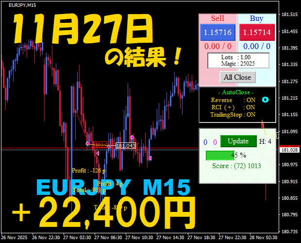 【EURJPY M15】前日の結果『ATS-25』 12月1日