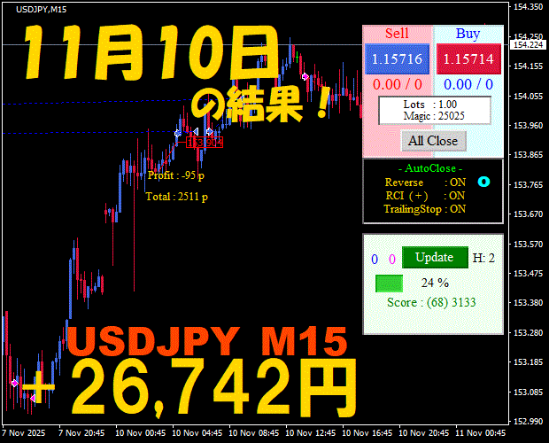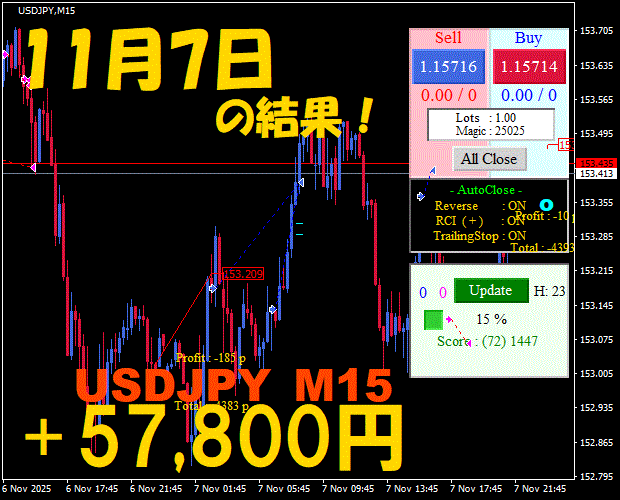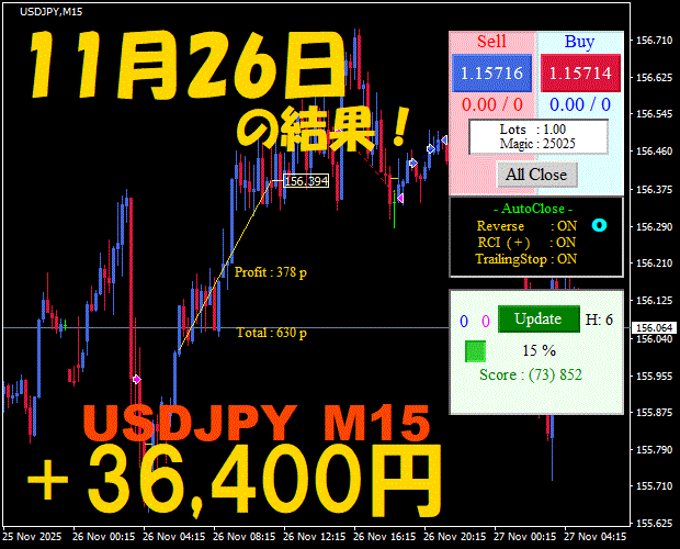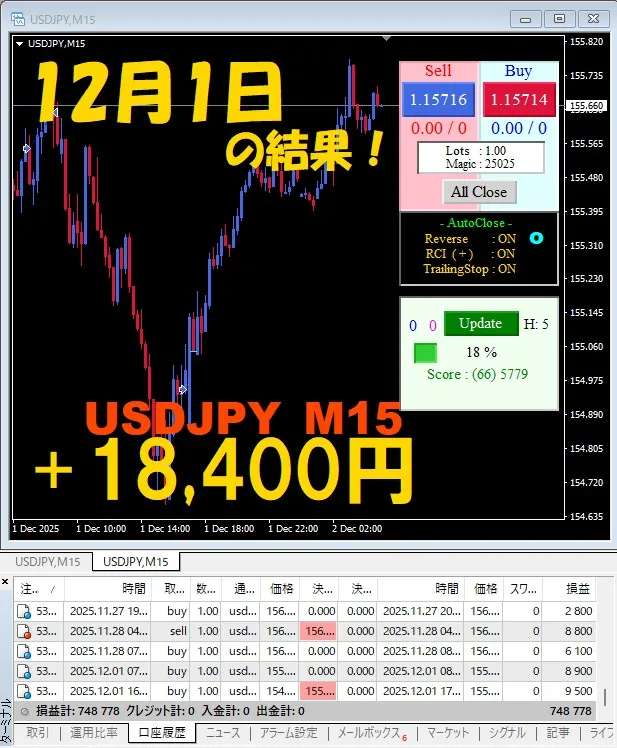 【USDJPY M15】前日の結果『ATS-25』 12月1日