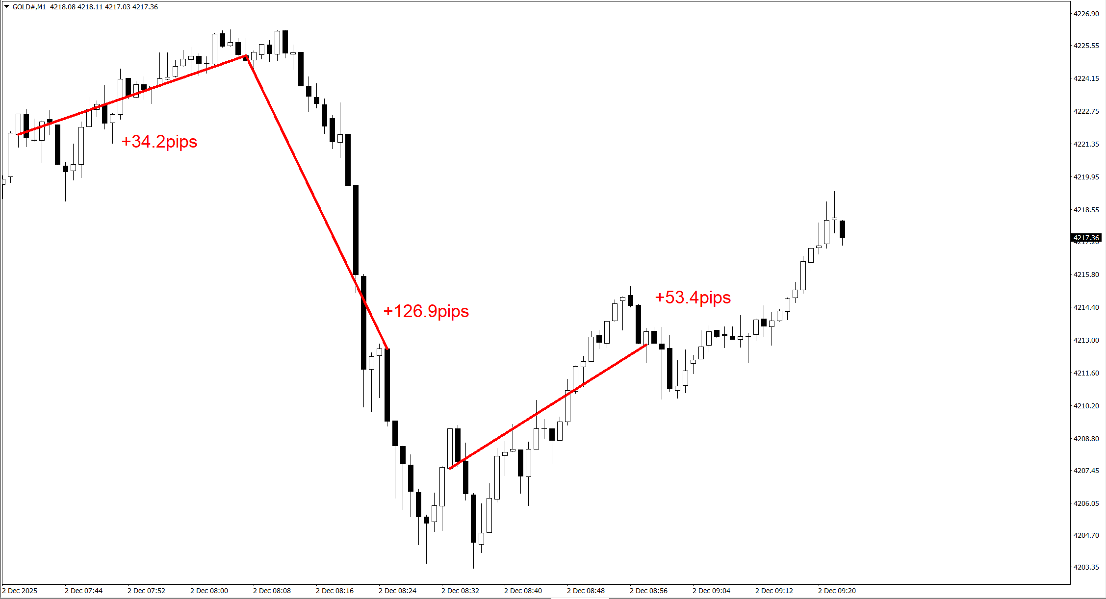 1分足のスキャルでも、1回のトレードで100pips超えは頻繁にあります。