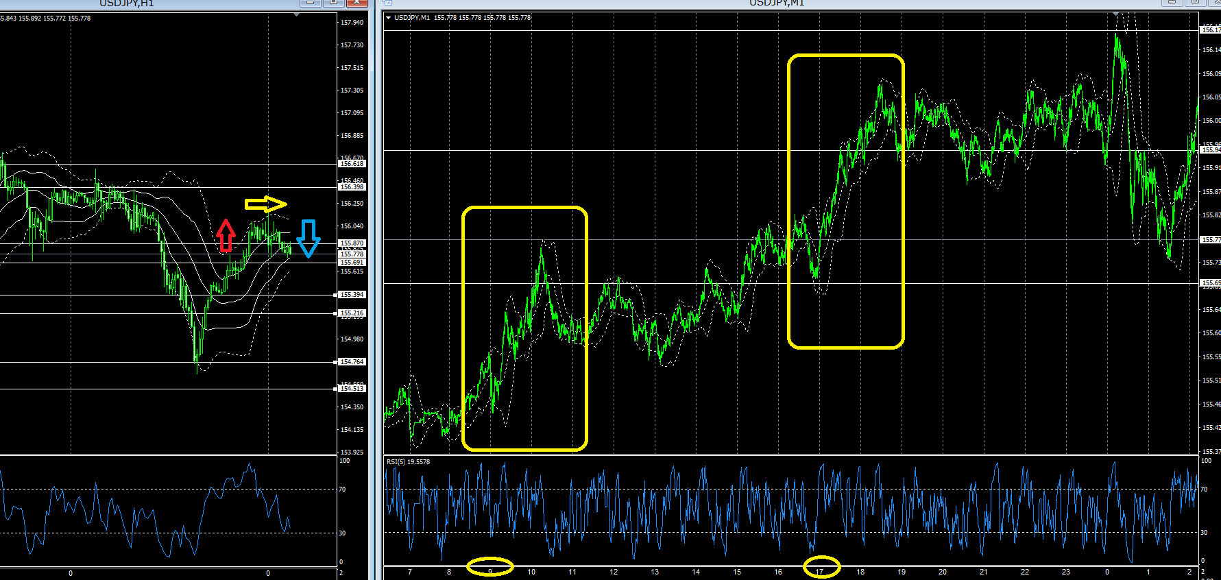 まぁこれは後になって分かる事なので、リアルタイムで今が小動きかどうか、ボラが出そうかどうかをチャートを見ながら判断して行かなければなりません。