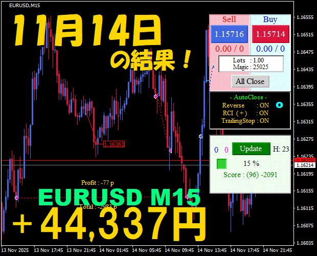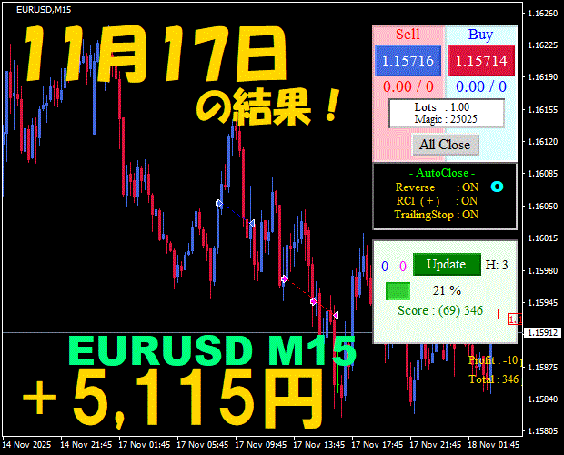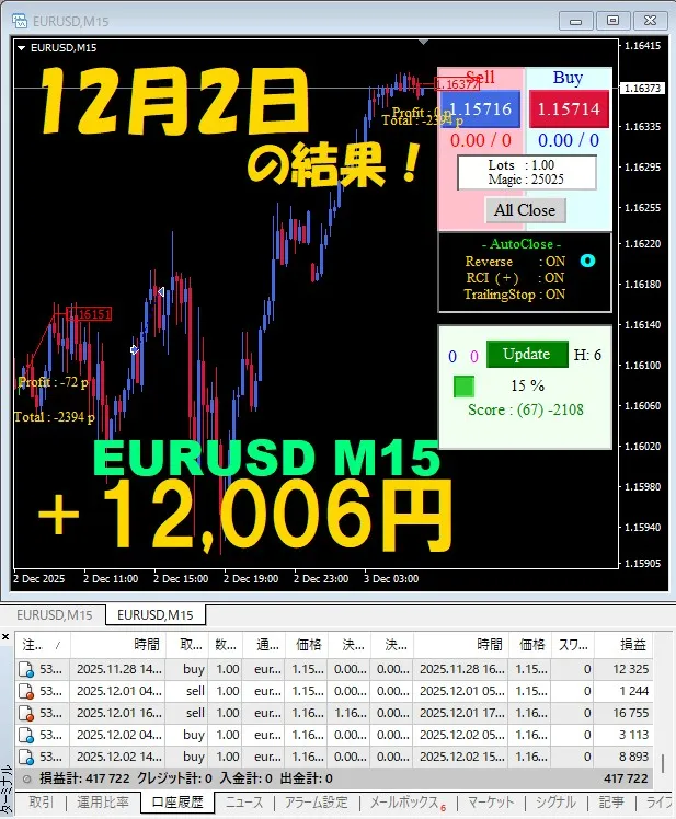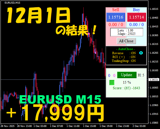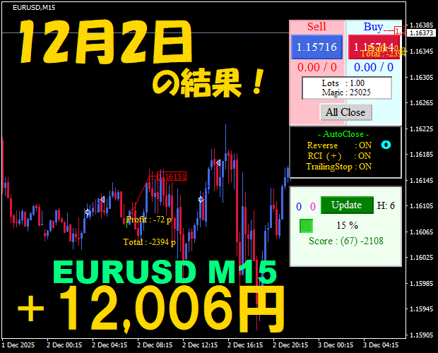【EURUSD M15】前日の結果『ATS-25』 12月2日