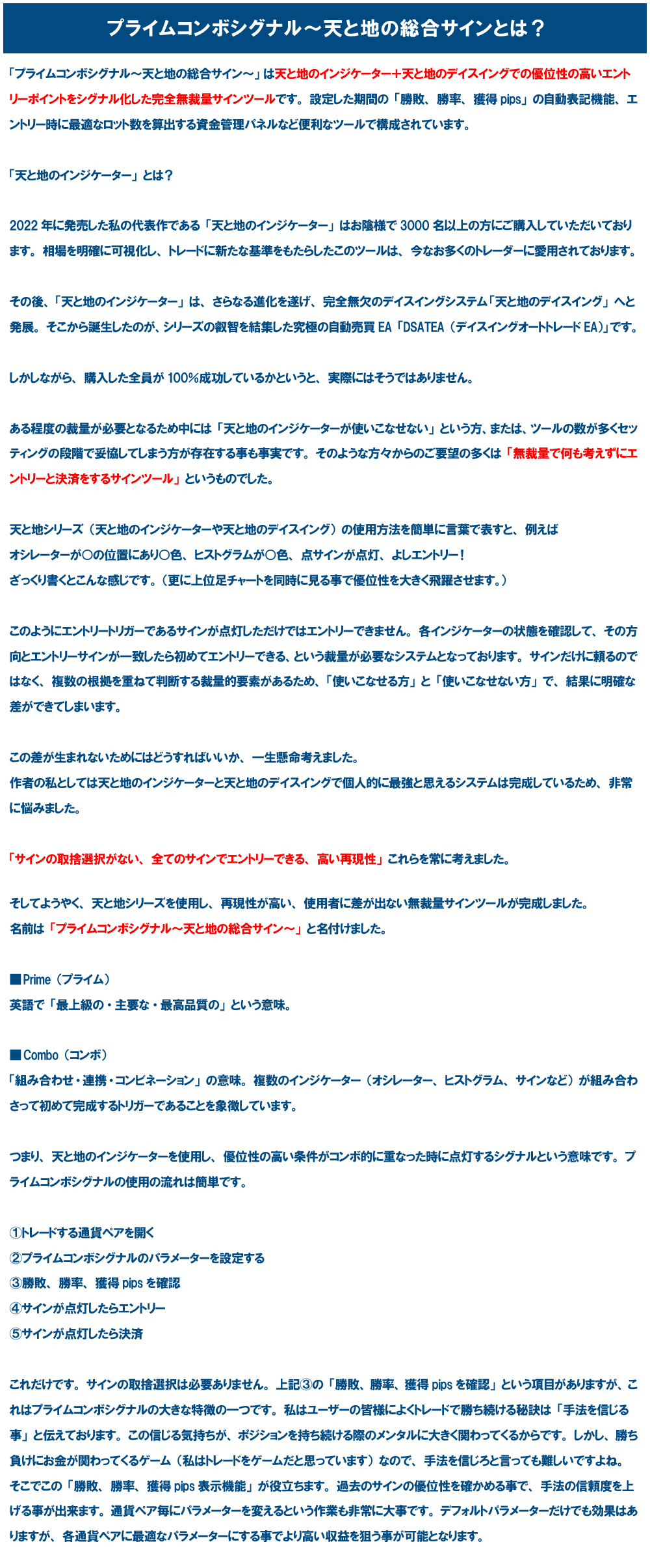 以上がプライムコンボシグナル ~天と地の総合サイン~の全貌です。