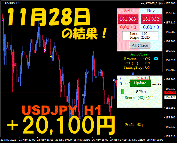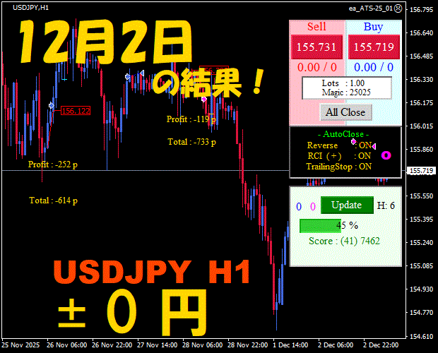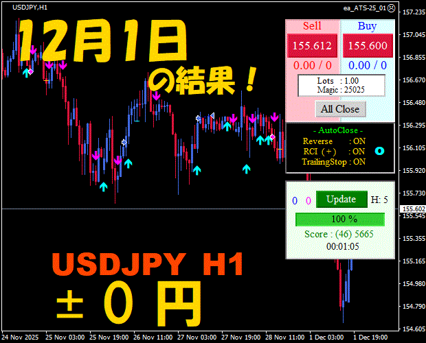 【前日の結果】USDJPY H1 / M5 『ATS-25』12月3日