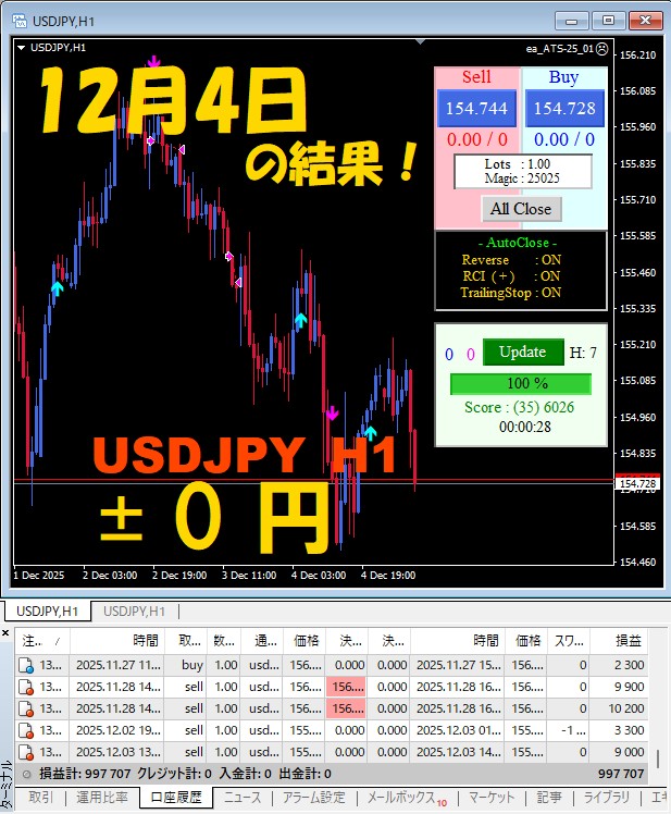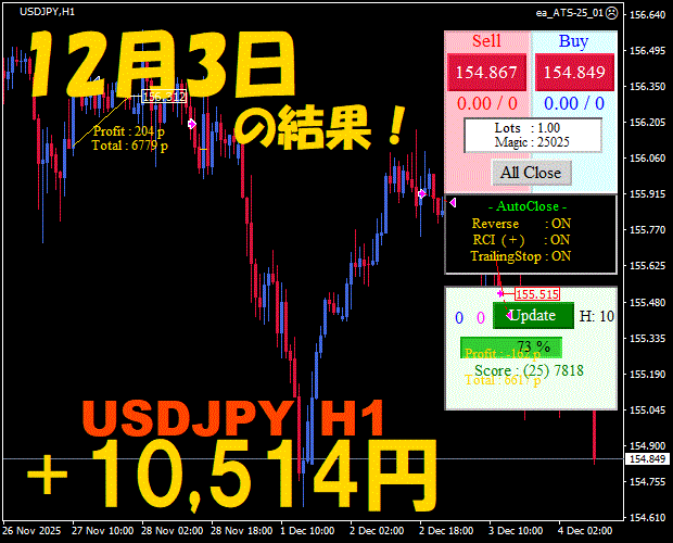 【前日の結果】USDJPY H1 / M5 『ATS-25』12月4日