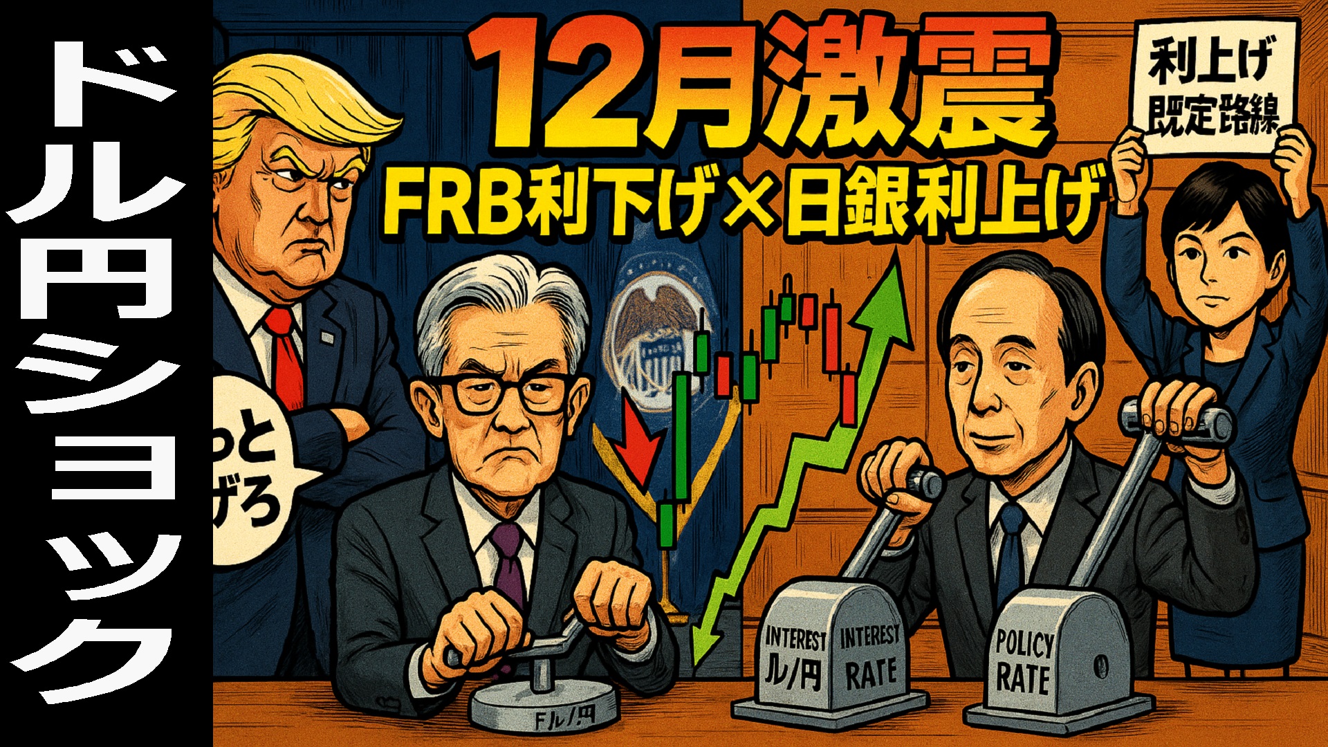 é åœãªãåé«ãå€ããã°æ¥éæµãã·ããªãªåå²ãæå€§ã®æŠåš 12æã¯ãFRBå©äžãïŒ10æ¥ïŒãšæ¥éå©äžãïŒ19æ¥ïŒãé£ç¶ããŠèµ·ããç¹æ®ãªæã§ããé åœã«é²ãã°ãéå©å·®çž®å°ãã§åé«ãã¬ã³ãã匷ãŸãã153åâ151åæ¹åãäžæã®çŠç¹ãšãªããŸãã