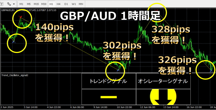 サブウィンドウには トレンドシグナル と オシレーターシグナル が搭載。