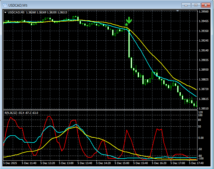 百戦錬磨【RCIを極めて移動平均線フィルターで勝つ!!】USDCAD 5分足 mBDSRのサイン