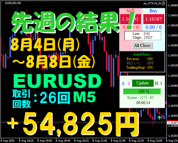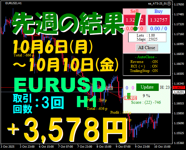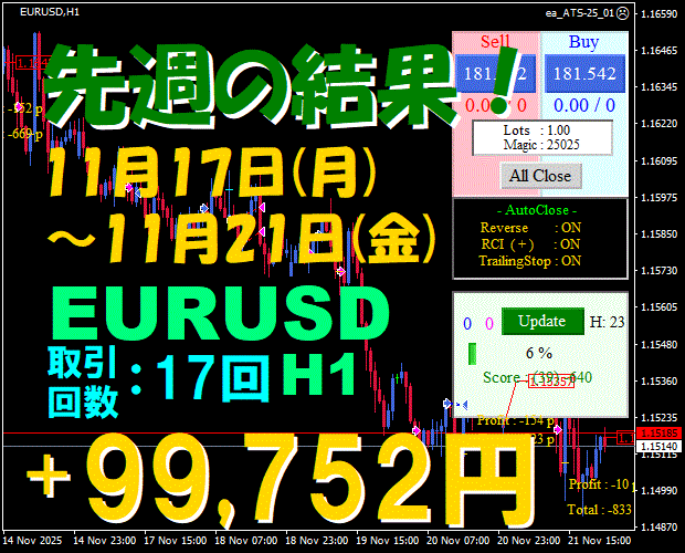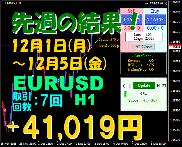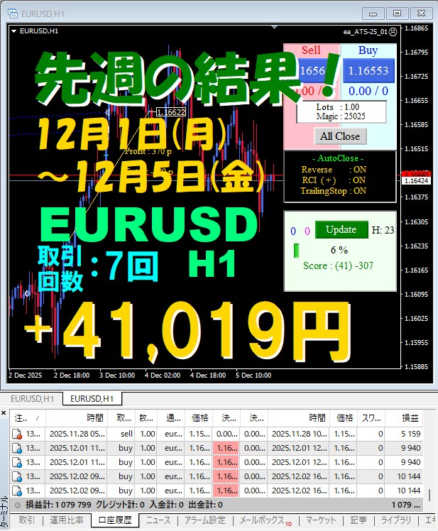 【先週の結果】EURUSD H1 『ATS-25』12月1日(月)~12月5日(金)