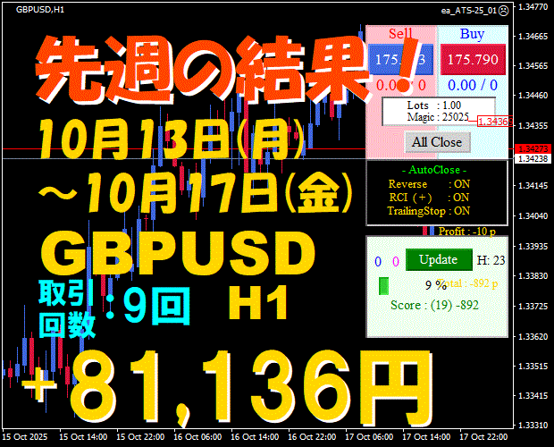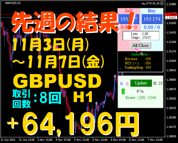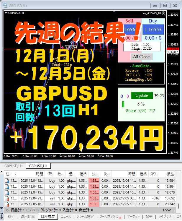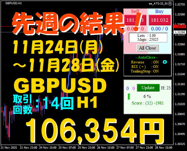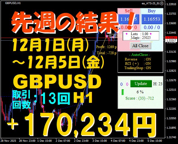 【先週の結果】GBPUSD H1 『ATS-25』12月1日(月)~12月5日(金)