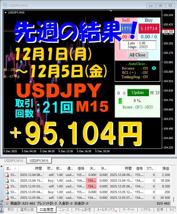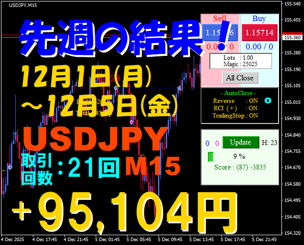 M15 週間報告!【USDJPY】ATS-25 ☆12月1日(月)~12月5日(金)