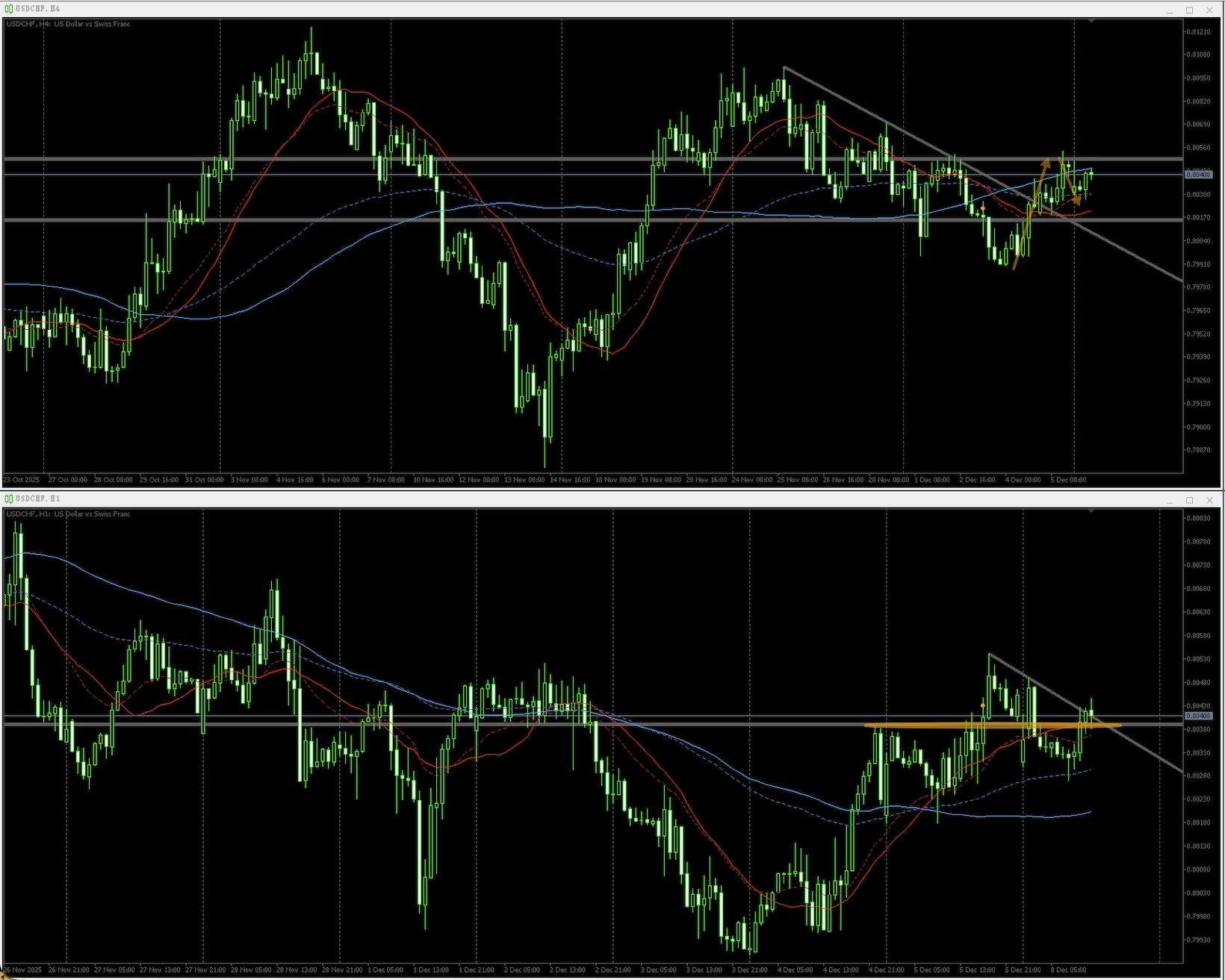 環境認識で4hをシンプルに見ている流れについてご紹介します。まずは4hで並べたチャートを見ます。何に注目しているかというと、