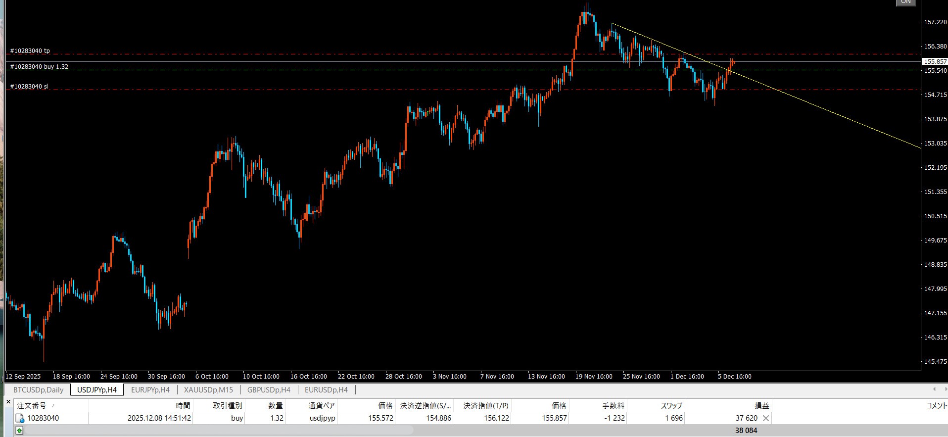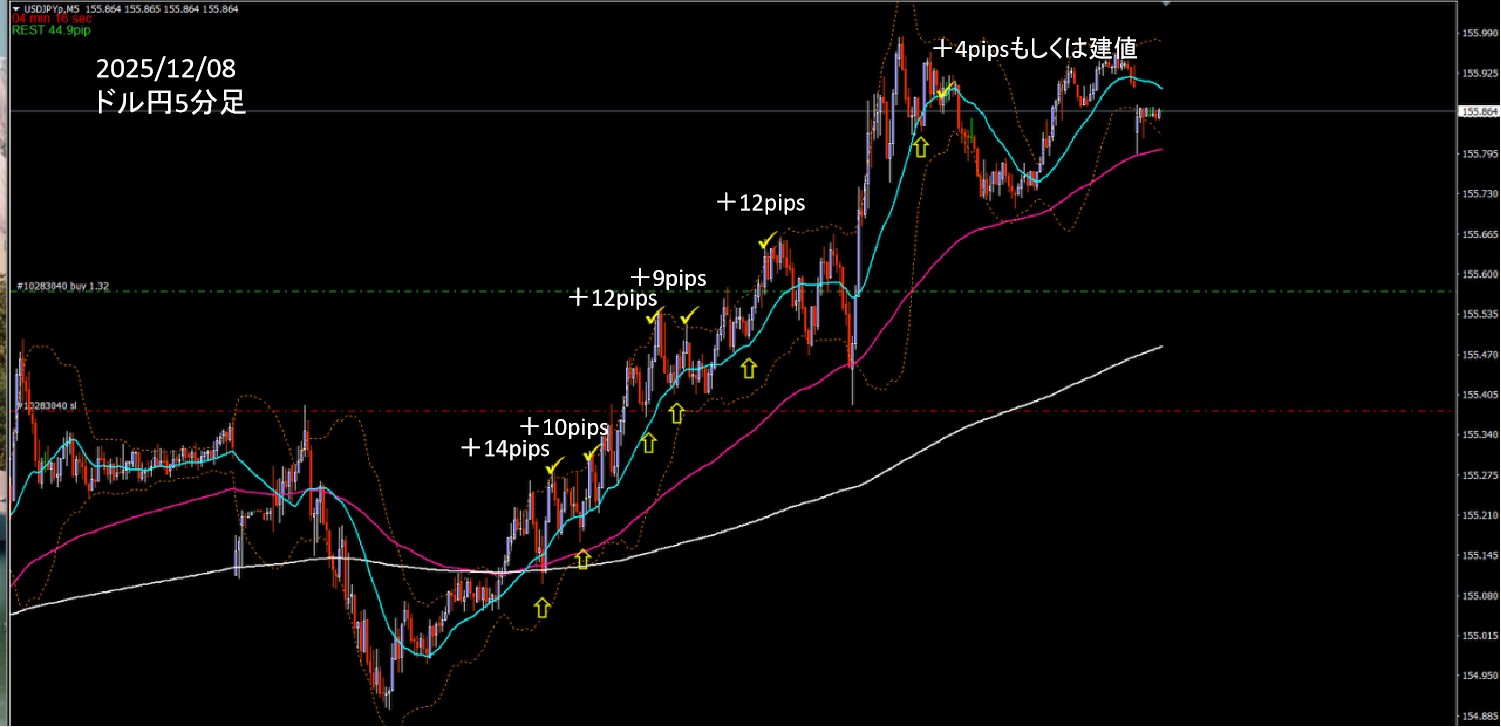 2025/12/08 ドル円 RCIとプロップ結果 含み益