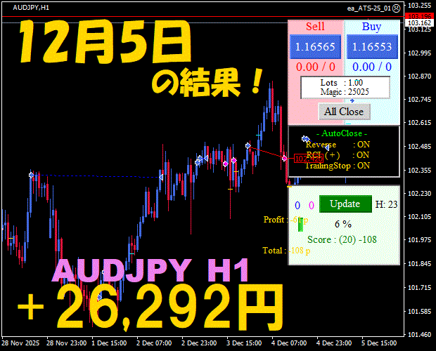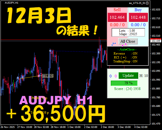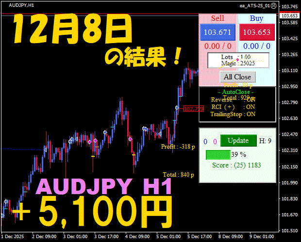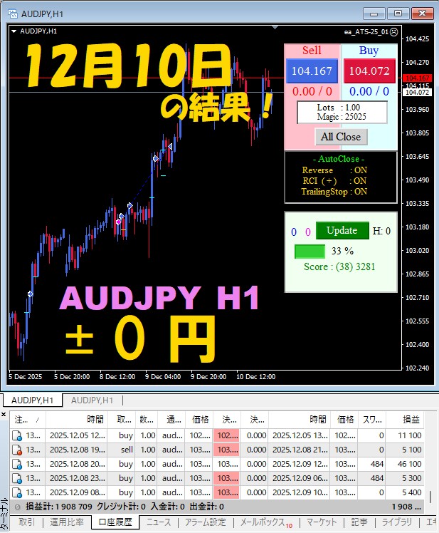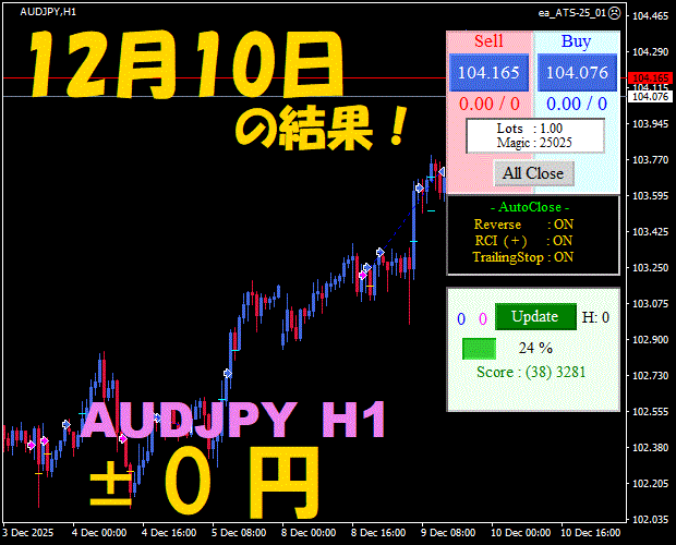 【前日の結果】AUDJPY H1 / M5 『ATS-25』12月10日