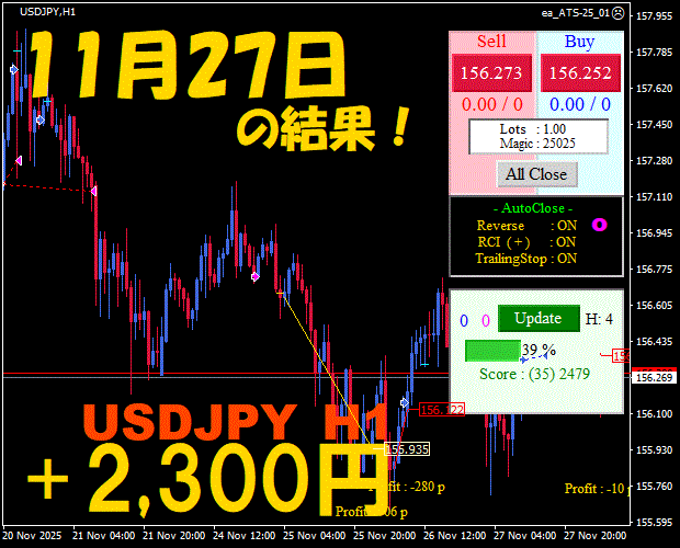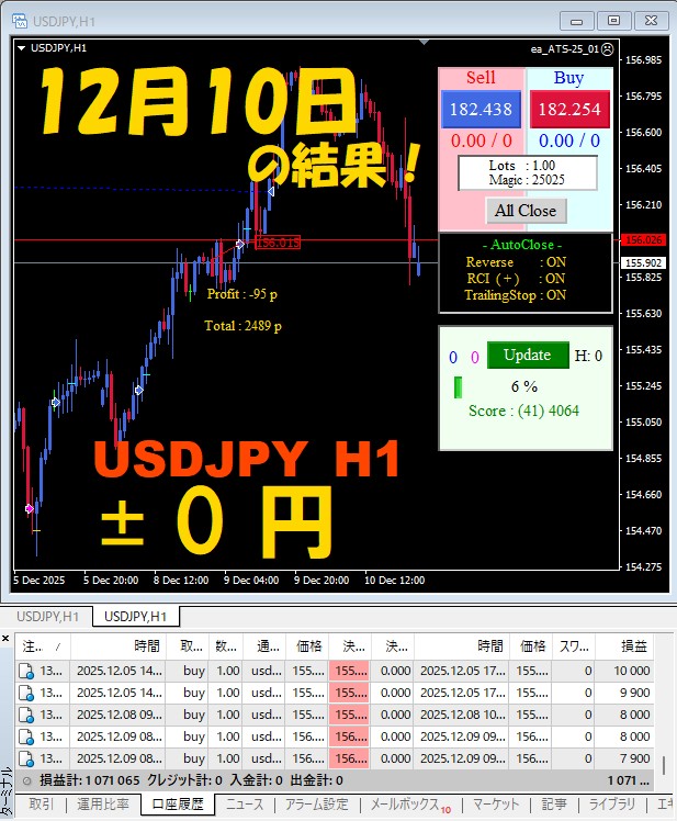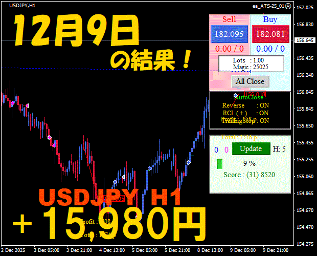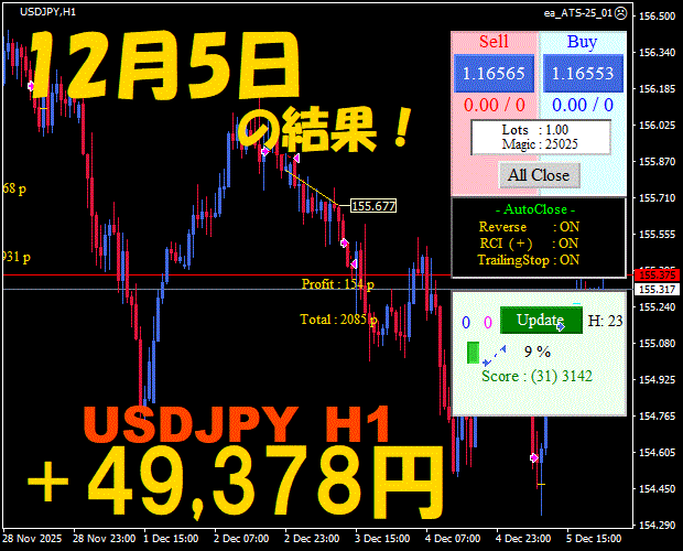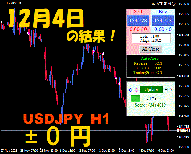 【前日の結果】USDJPY H1 / M5 『ATS-25』12月10日