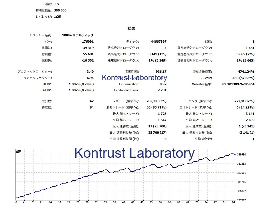 USDJPY用のEAの過去約一年のバックテストの検証結果です