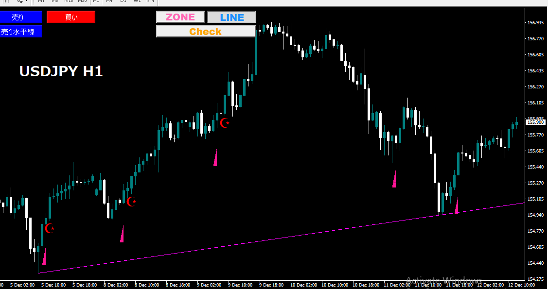 しかも、トレンドラインをチャートに描写した時は、独自のブレイクロジックが組み込まれています。