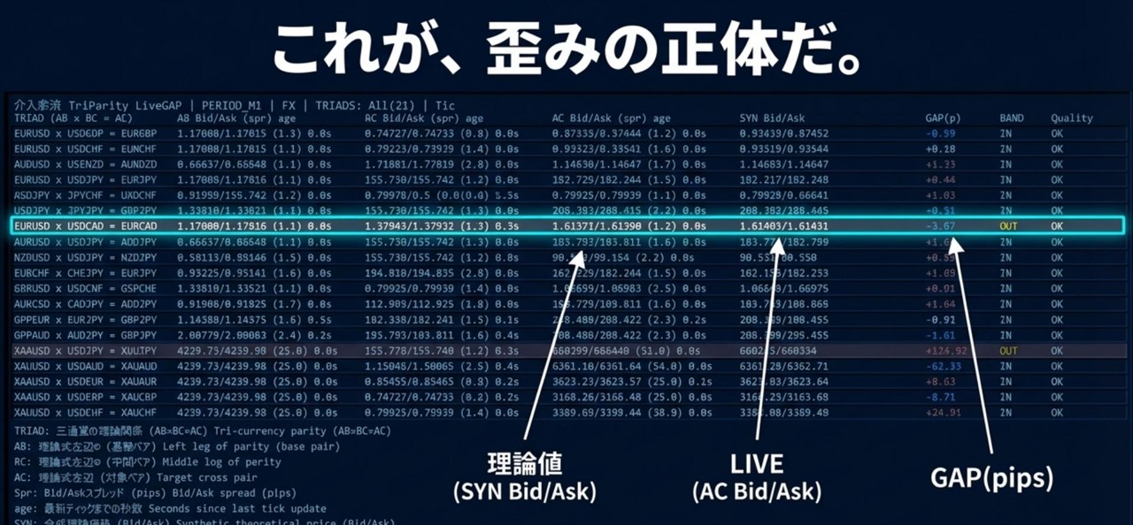 【無料商品付き】歪みは本当に存在するのか? 【介入余波】三角通貨パリティLiveGAP(MT5インジ)で21トライアッドのGAPを初めて可視化する