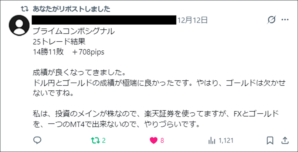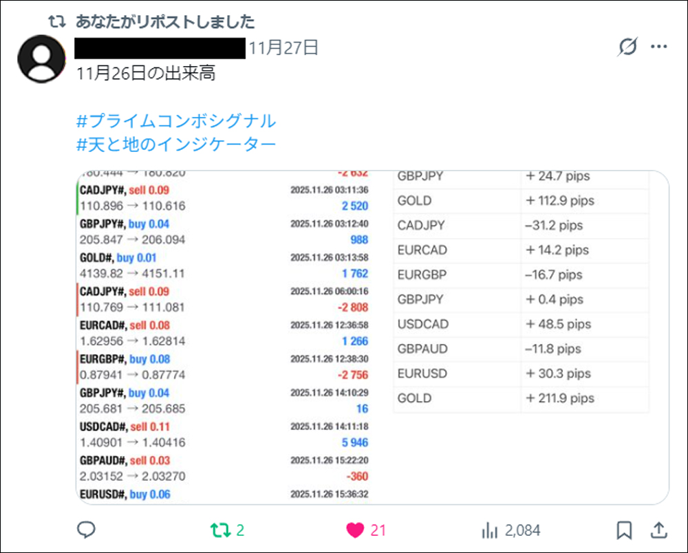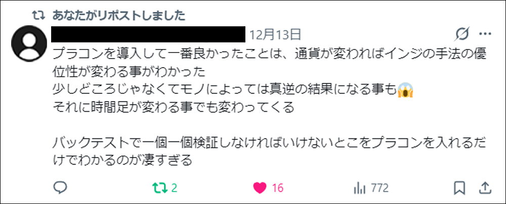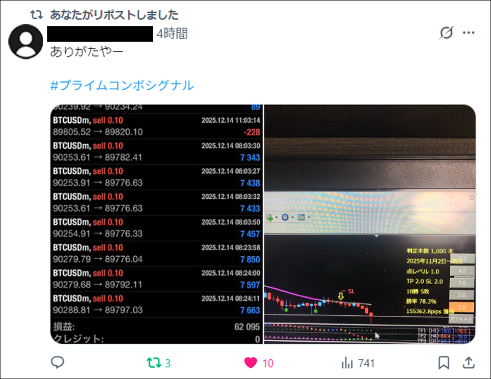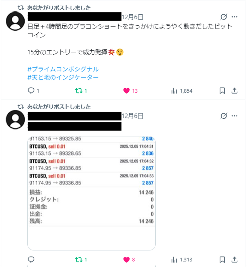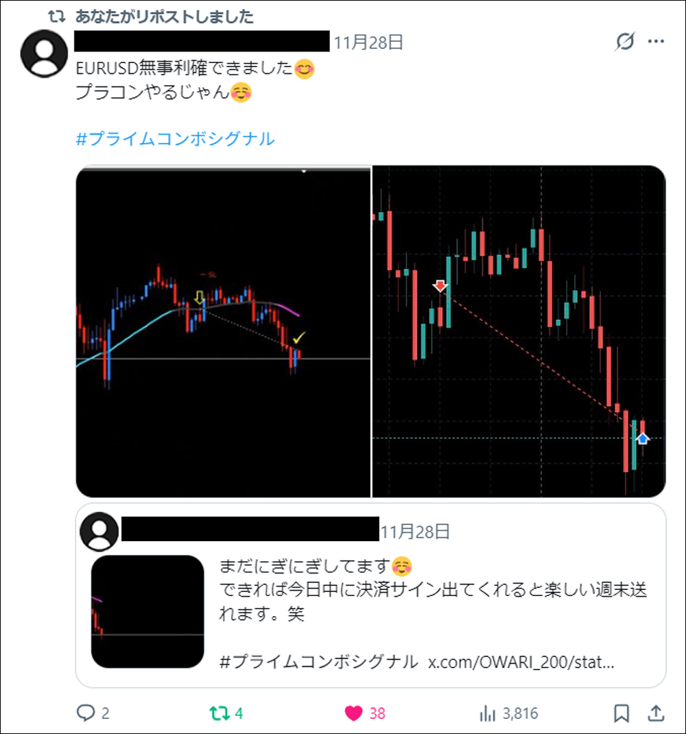 さらに今回は、発売前に3名のモニターの方にプライムコンボシグナルをご使用いただき、トレード履歴・使い心地・優位性などについて、それぞれの視点からポストしていただきました。本記事では、それらのポストもあわせてご紹介させていただきます。