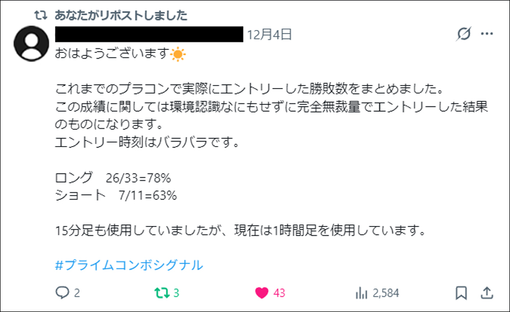 今回は、実際にプライムコンボシグナルを使用されたユーザー様のポストを紹介させていただきます。