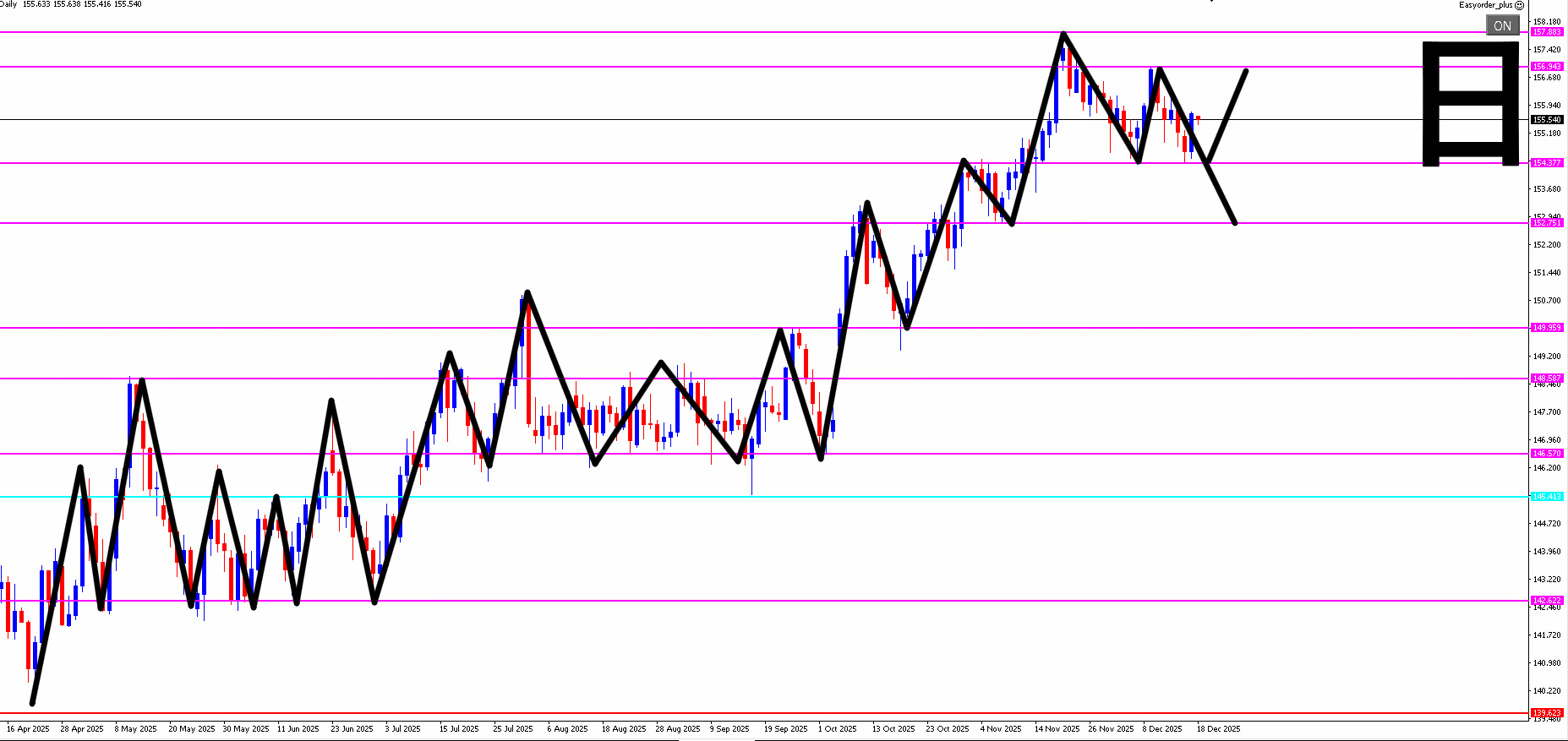 【赤丸①】155.734円をこえたあとの押し目買い。