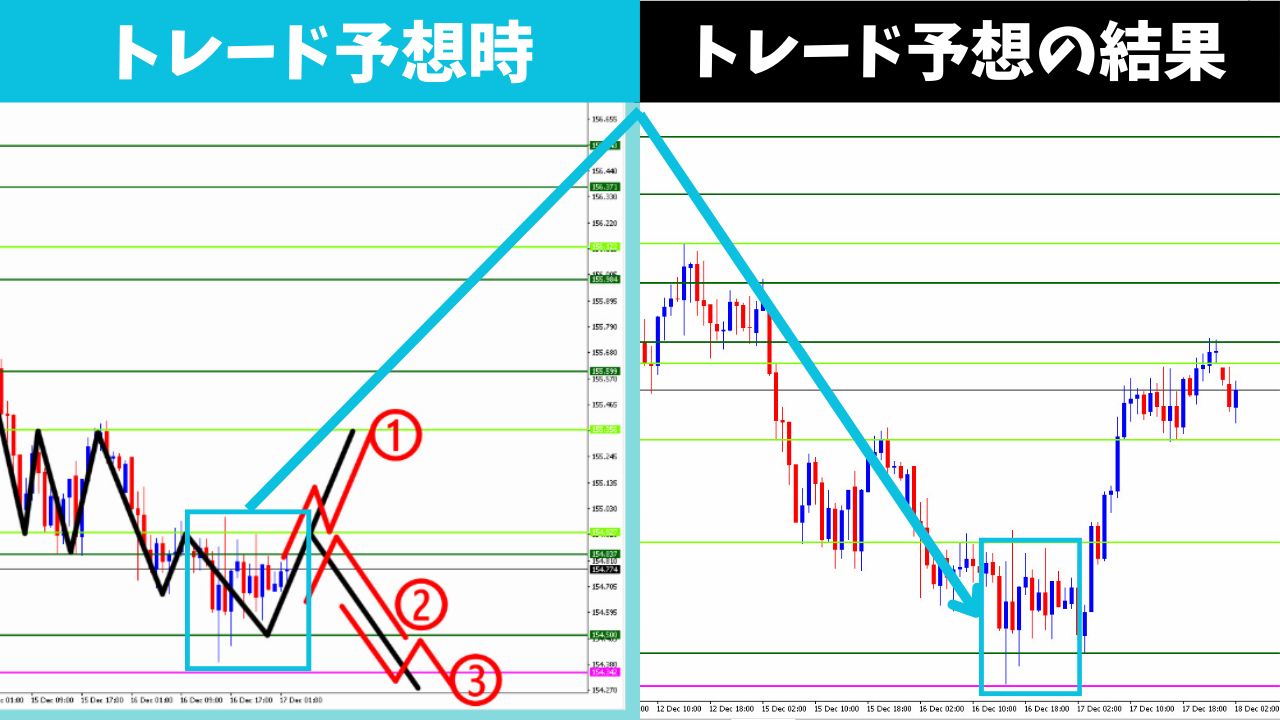 前回(2025年12月17日水曜日)のトレード予想の結果は以下になります。