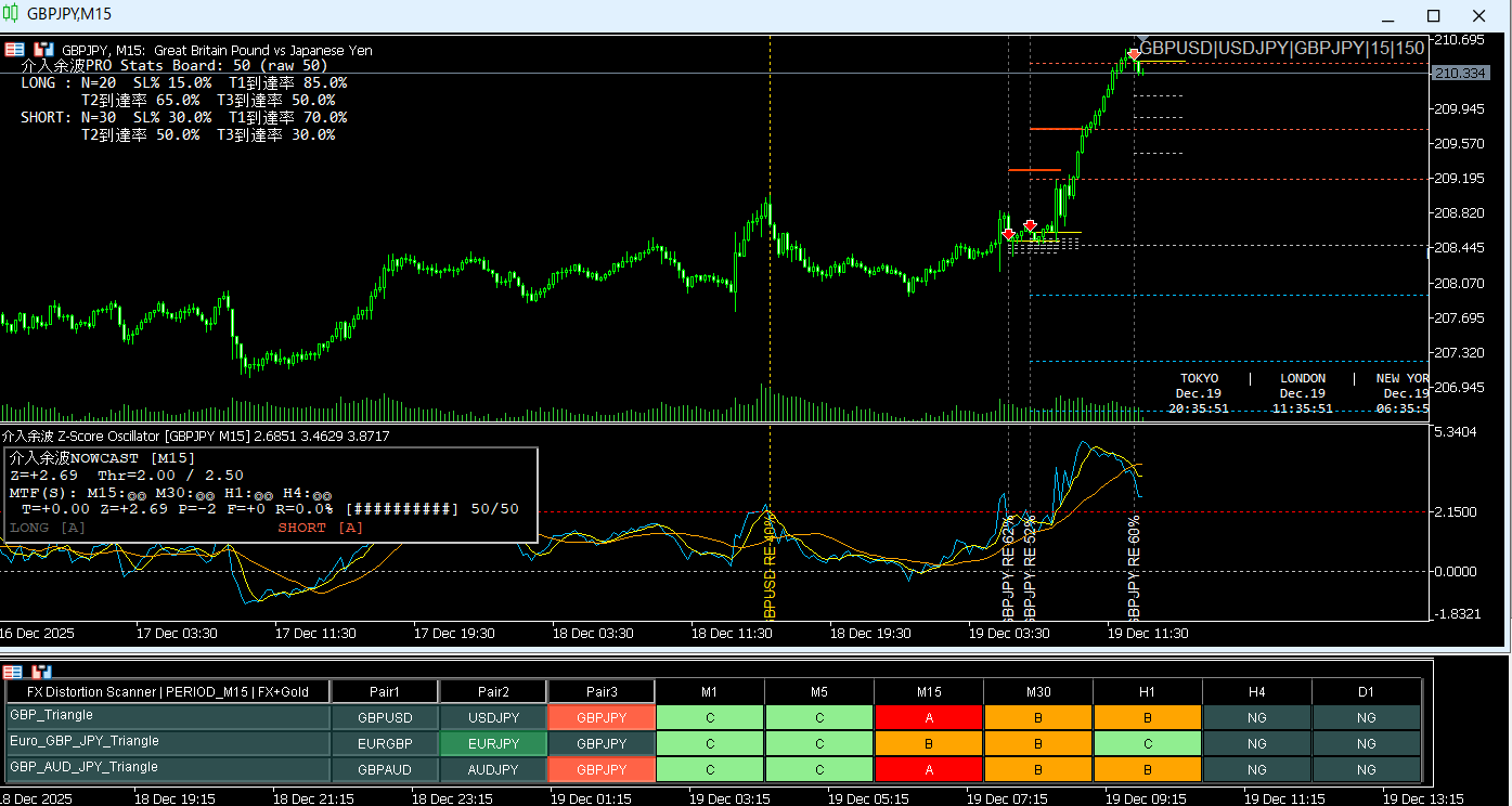 まず事例から。スクショは GBPJPY(M15)SHORT のケースです。