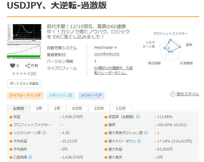 USDJPY、大逆転-過激版 - システムトレード - 世界のトレード手法・ツールが集まるマーケットプレイス - GogoJungle