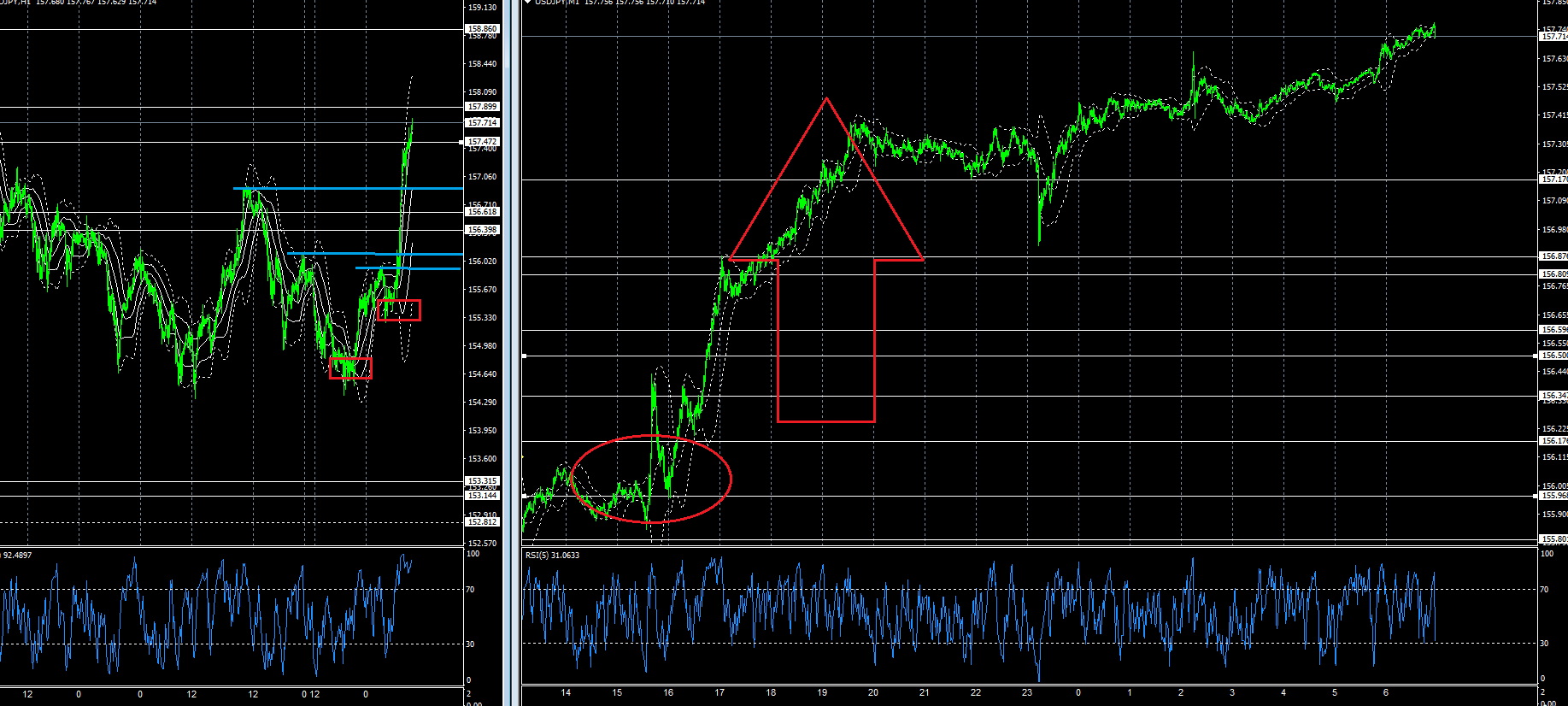 見ての通り日銀でドル円は上に拡大しましたが、チャートの動きそのものはいつもと変わらない所で反転し上昇。