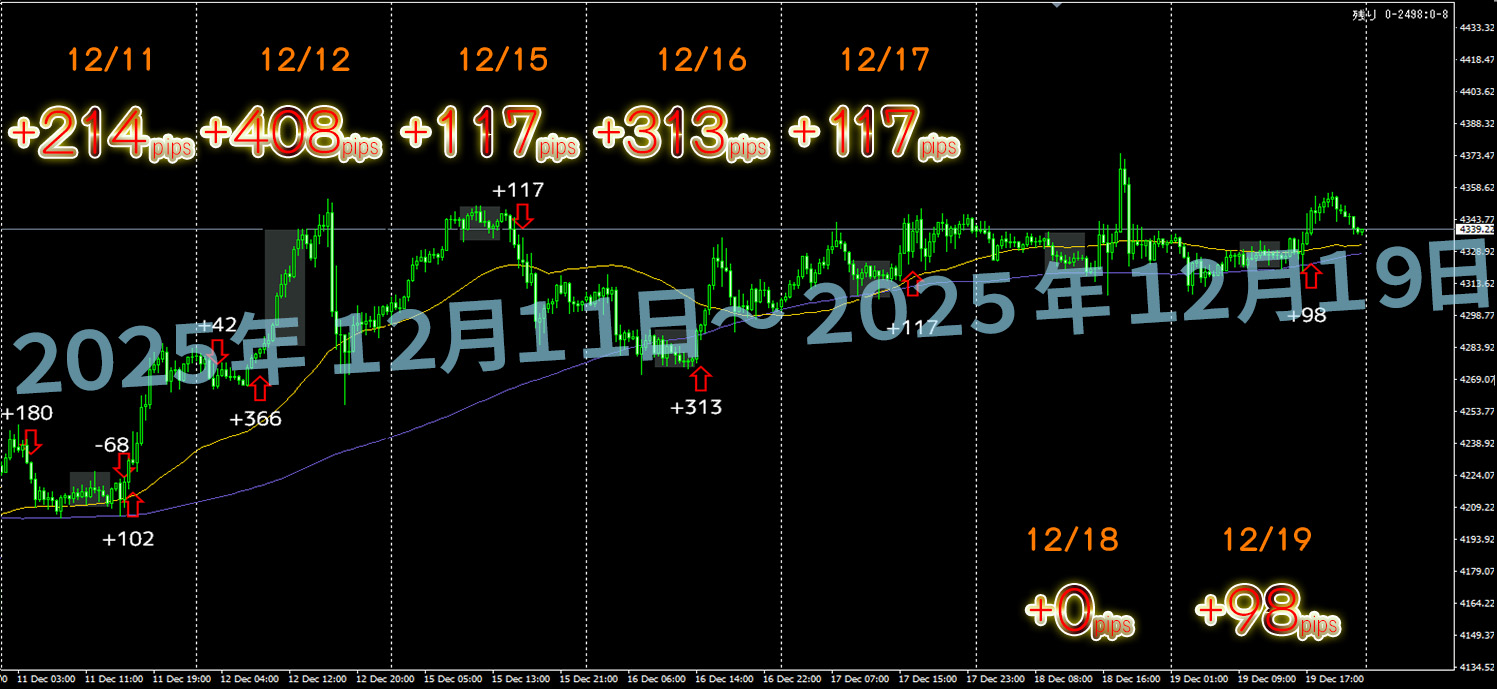 今週+645pips!12/15~12/19の部分をご覧ください。