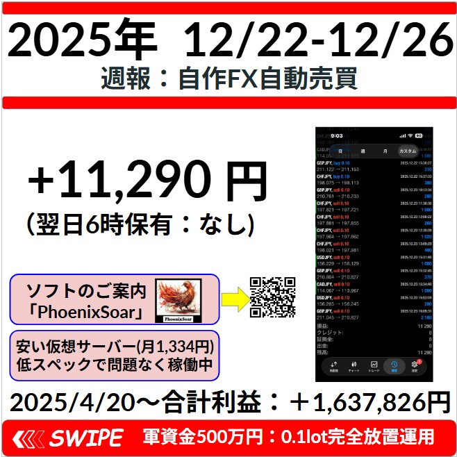 【週報:2025.12.22-2025.12.26】オリジナルEA「PhoenixSoar」の成績報告