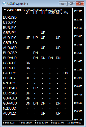 目に入るのは「UP(上昇)」「DN(下降)」「―(トレンドなし)」のシンプル表示だけ。