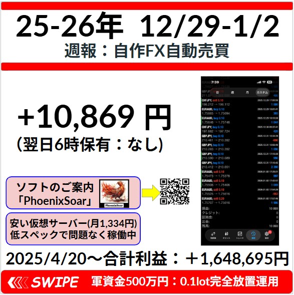 【週報:2025.12.29-2026.1.2】オリジナルEA「PhoenixSoar」の成績報告