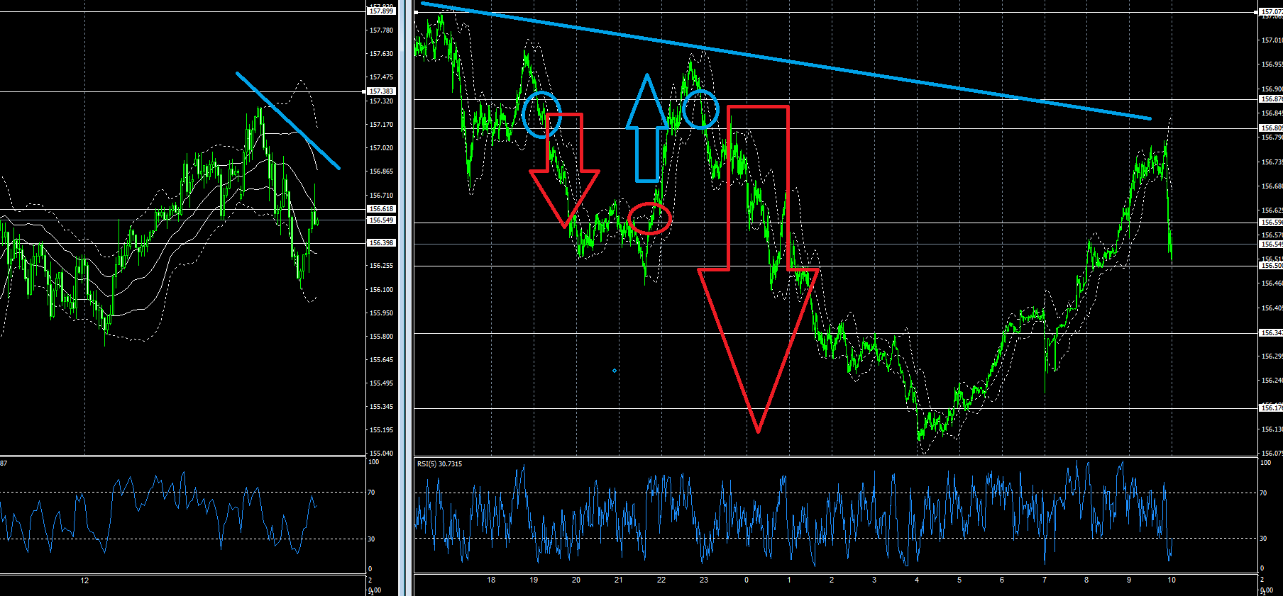 ドル円は15700を付けて右肩下がりのチャートを形成し出しました。