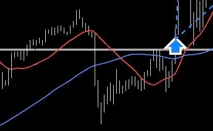 MA上抜け後の支え、高値切り下げラインも抜け後の押し目、オレンジのサポレジで支え