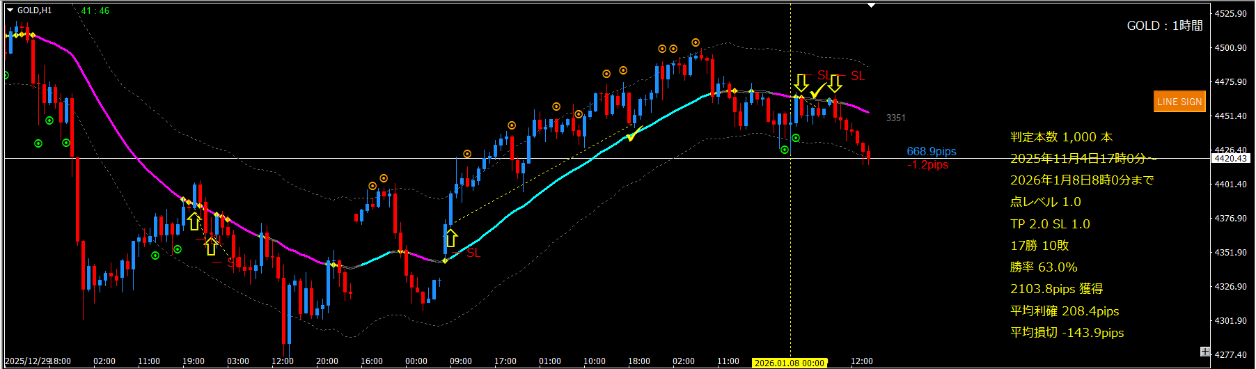 ゴールド(GOLD)/ 1時間足+4時間足+日足 過去検証