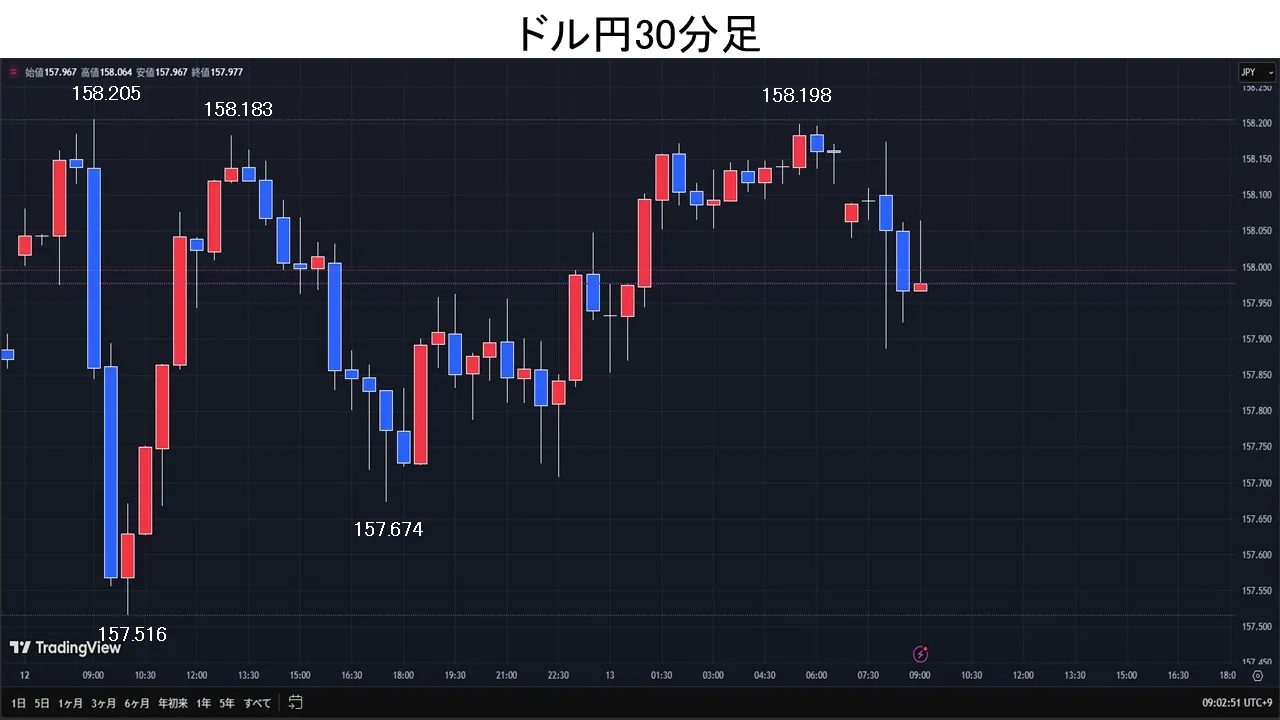 衆院解散観測報道を受けた円売りでドル円は158円台まで上昇。