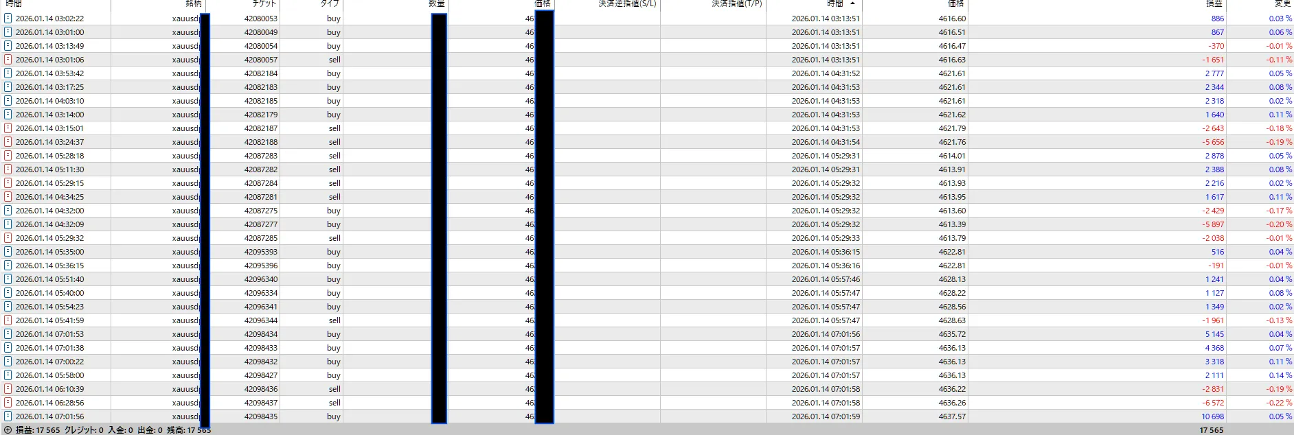 ?1.本日のEA稼働状況(2026年1月14日 水曜日)